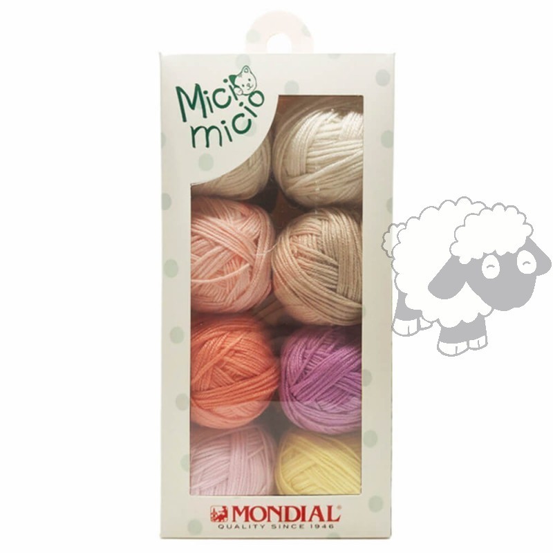 Mici Micio es un pack de 16 ovillos de 25 gramos en tonos pastel, ideal para crear tus propios grannys, complementos de bebé, jerséis, mantitas...etc.